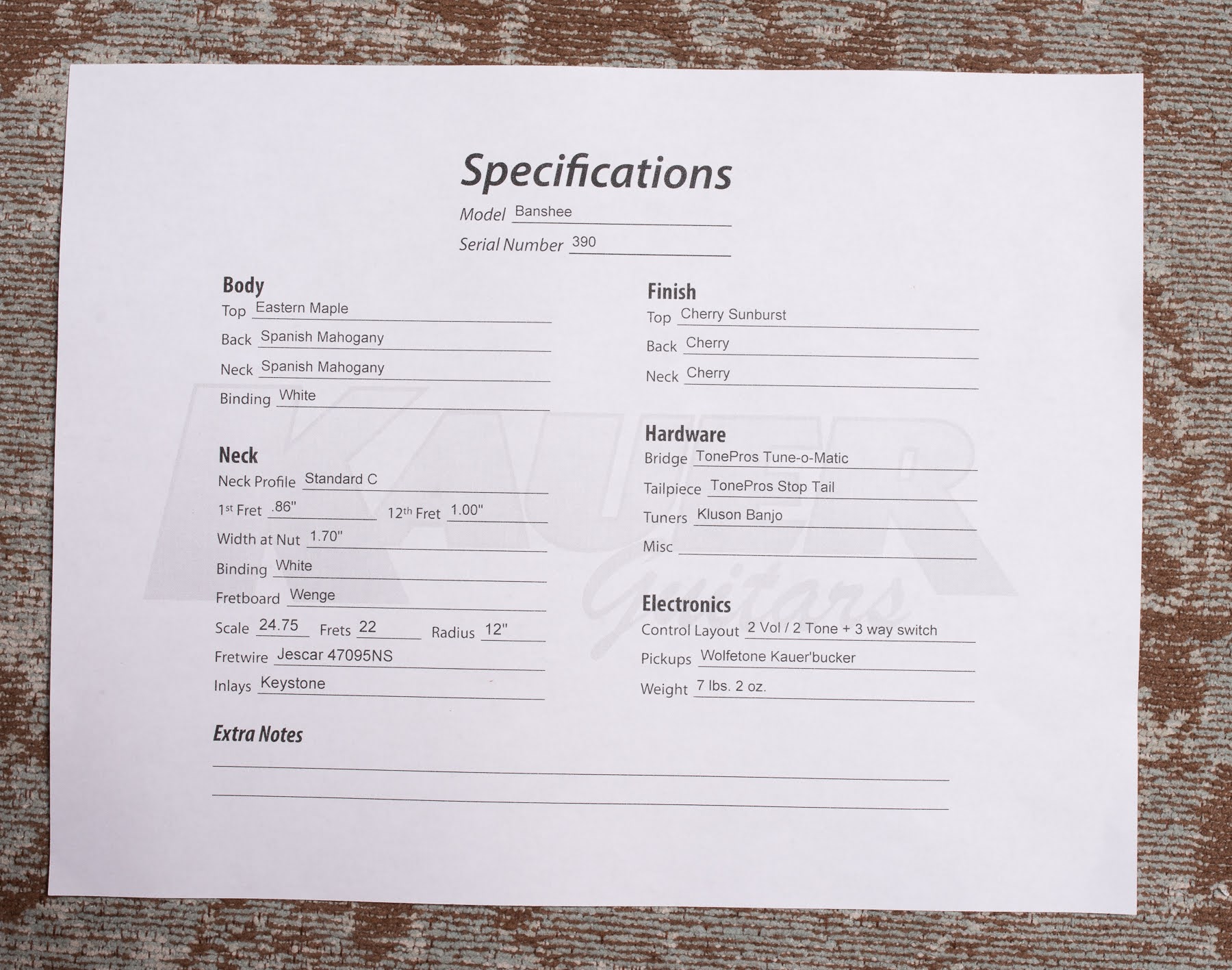Kauer Banshee Deluxe Cherry Burst
