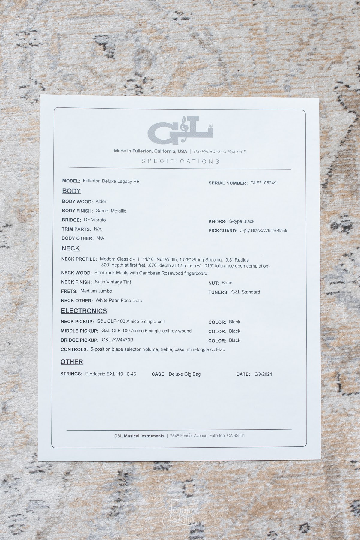 G&L Fullerton Deluxe Legacy HB - Garnet Metallic #CLF2105249